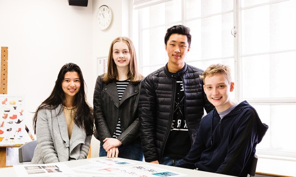 “Lindy,” the students at Eynesbury apparently use first names for their teachers, “Lindy is really good at teaching art,” says Cameron. Cameron took art in year 10 and he’s taking it again this year and the fact that he’s running his own fashion label makes us think he’ll be studying it again in Year 12. The paper in front of him has various words drawn on it, some in English and others in Korean. It looks awesome.