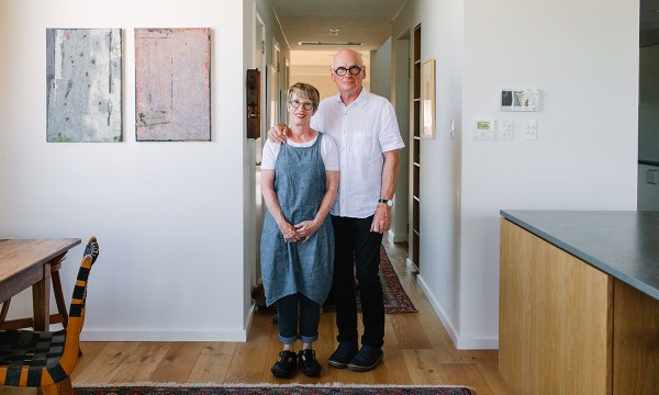 “The design is such that Yvonne’s level and my level for work down the bottom is inward facing, and the bathroom and bedroom are inward, but up here in the living area it opens out, so you’re looking out to the world.”
