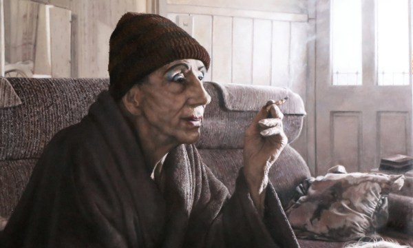 The portrait also hints at a sadder inner life, employing a monotonous palette, with only minor bursts of colour in Tootsie’s makeup. Jaq found that throughout the sittings for the portrait, Tootsie would use the opportunity to tell his story to the artist.