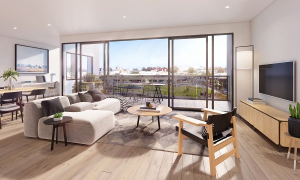 The roots of Bowden’s earthy character are maintained in 354 Bowden through its use of natural materials, complemented by neutral colour palettes for apartment exteriors and interiors alike.