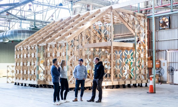 Rather than using hardwood timber beams, the bones of an Assembly Three structure are made from plywood cut into modular pieces (using a computer numerical control machine), and configured to achieve structural strength and durability.
