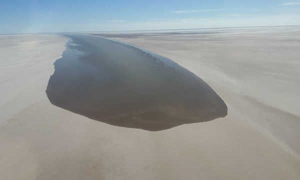“It’s now two thirds of the way towards the bottom end of Lake Eyre North, and within the next week it should be filling up the bottom portion of the lake.”