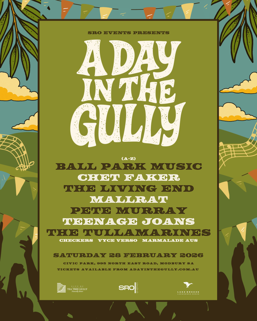 Big-name national acts Ball Park Music, fresh off supporting Oasis on their 2025 tour across Australia, and Aussie rock veterans The Living End will join some of Adelaide’s best local artists at A Day in the Gully, a new festival at Modbury’s Civic Park in February.