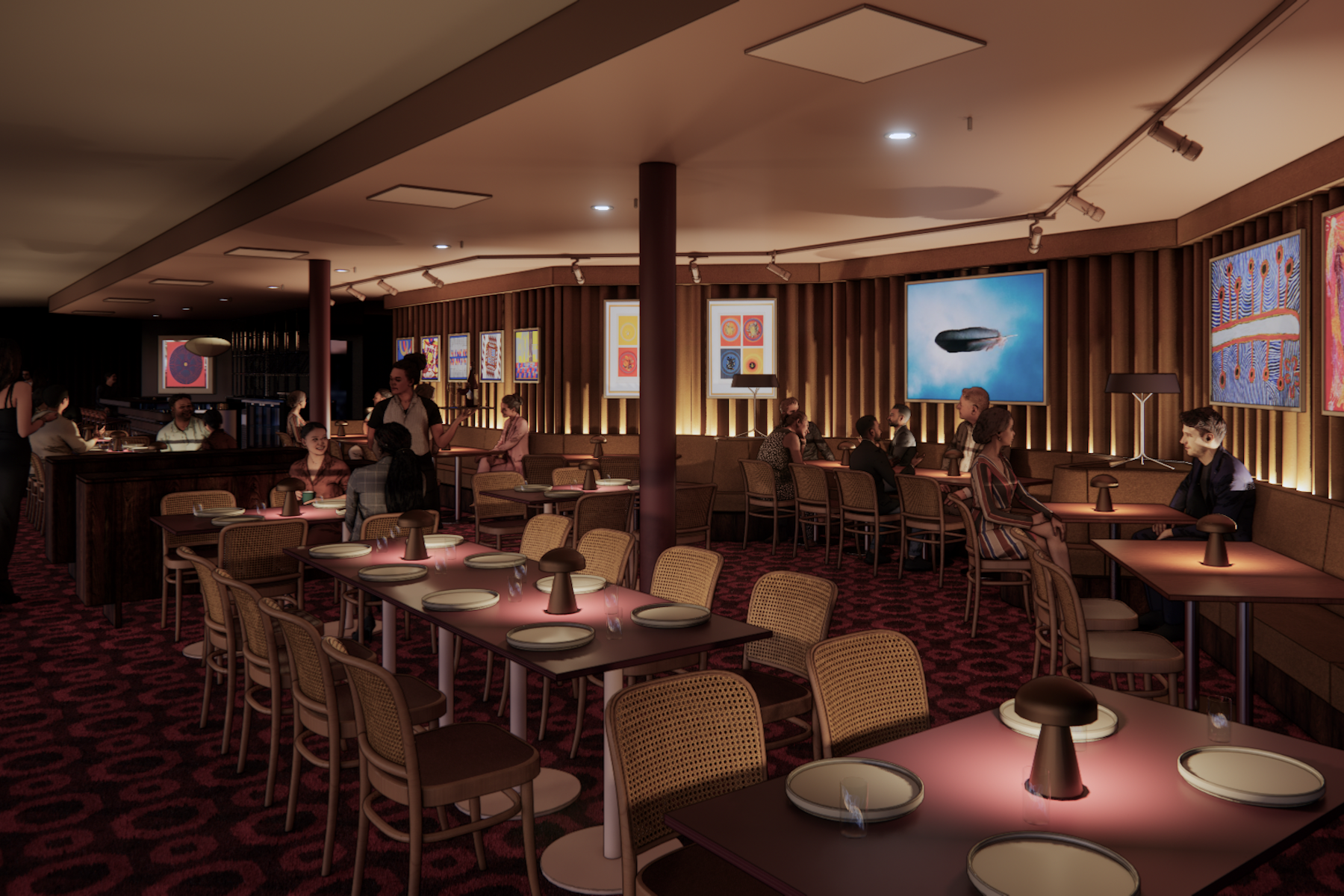 The Festival Centre has released an early rendition of the new space’s mid-century inspired fit-out, which includes a few extra Easter eggs from the ghosts of Adelaide’s cultural past (CityMag can’t help but notice the mock-up appears to feature artworks by Otto Hajek, whose colourful concrete sculptures once dominated the Festival Centre plaza before their removal to make way for the Festival Tower redevelopment).
