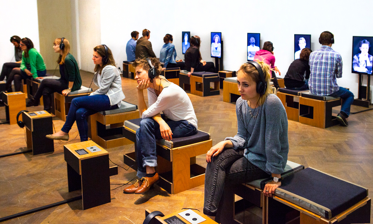 Three months after recording each interview, Staub visits the interviewee again and films them listening to the edited audio. Their reactions add to the intimacy of the exhibition experience, as can be seen in the trailer above .