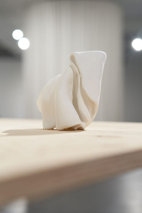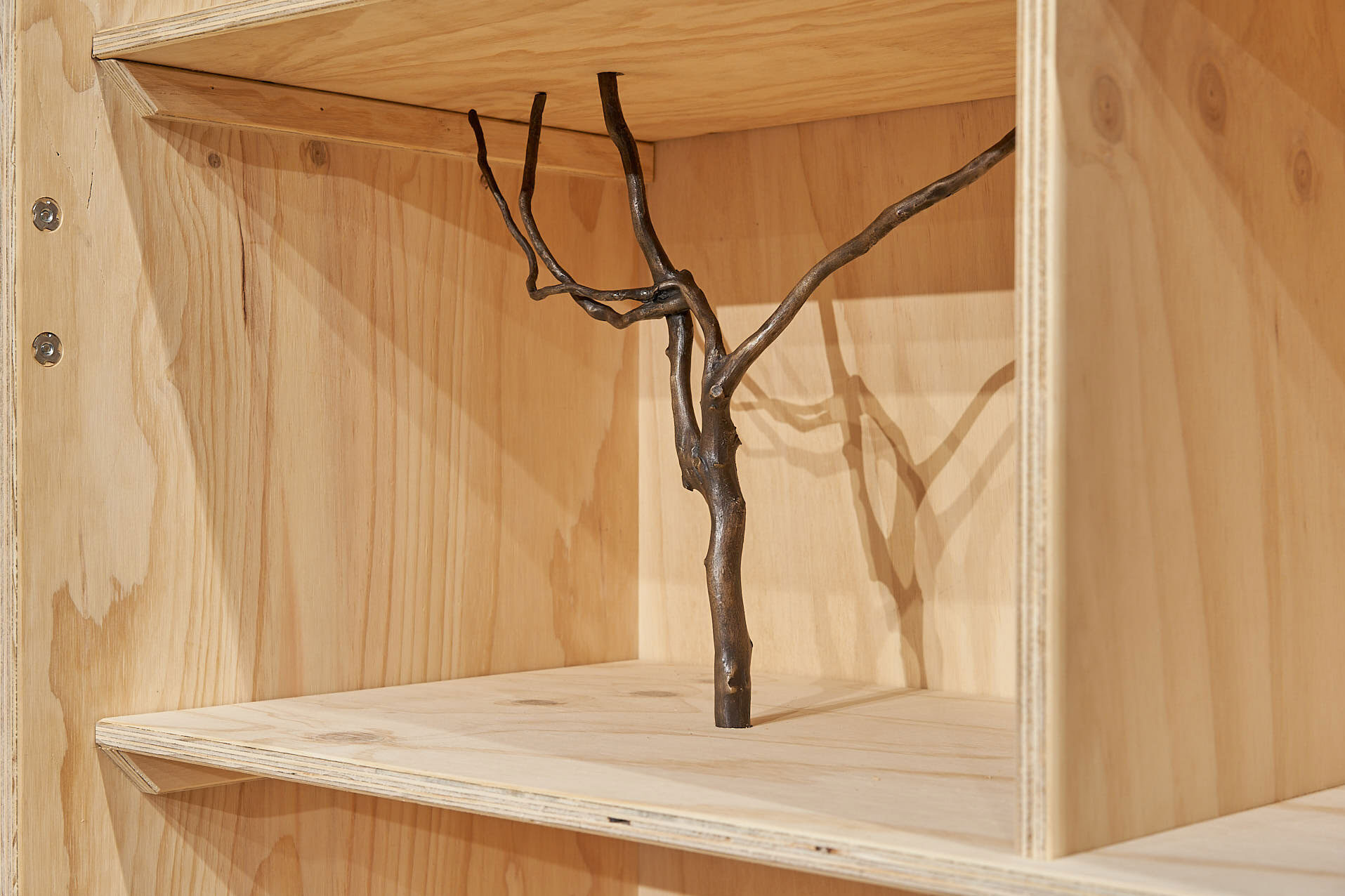 Currie’s practice often focuses on bringing abstract notions – beliefs, emotions and dreams – into the physical world of objects. Message from the meadow features tactile forms made of paper mache, clay, ceramic and bronze which demonstrate the power of objects to communicate things that are beyond words. In this case, she wanted to create an environment that was the ecosystem for these objects to exist within, mimicking a meadow and its ecosystem.