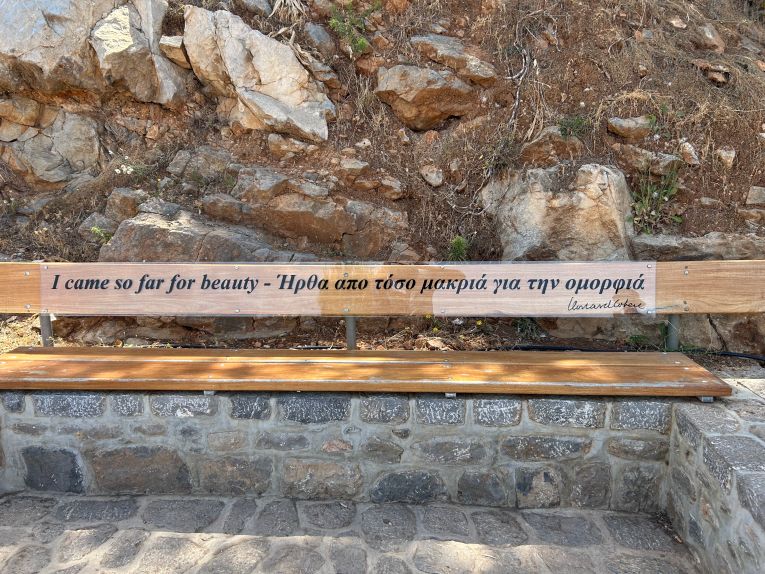 The only Cohen remnant we managed to find was The Leonard Cohen Memorial Bench on Hydra, installed shortly after he passed away in 2016. It is located on a coastal track and is a 10-minute walk from the harbourfront.