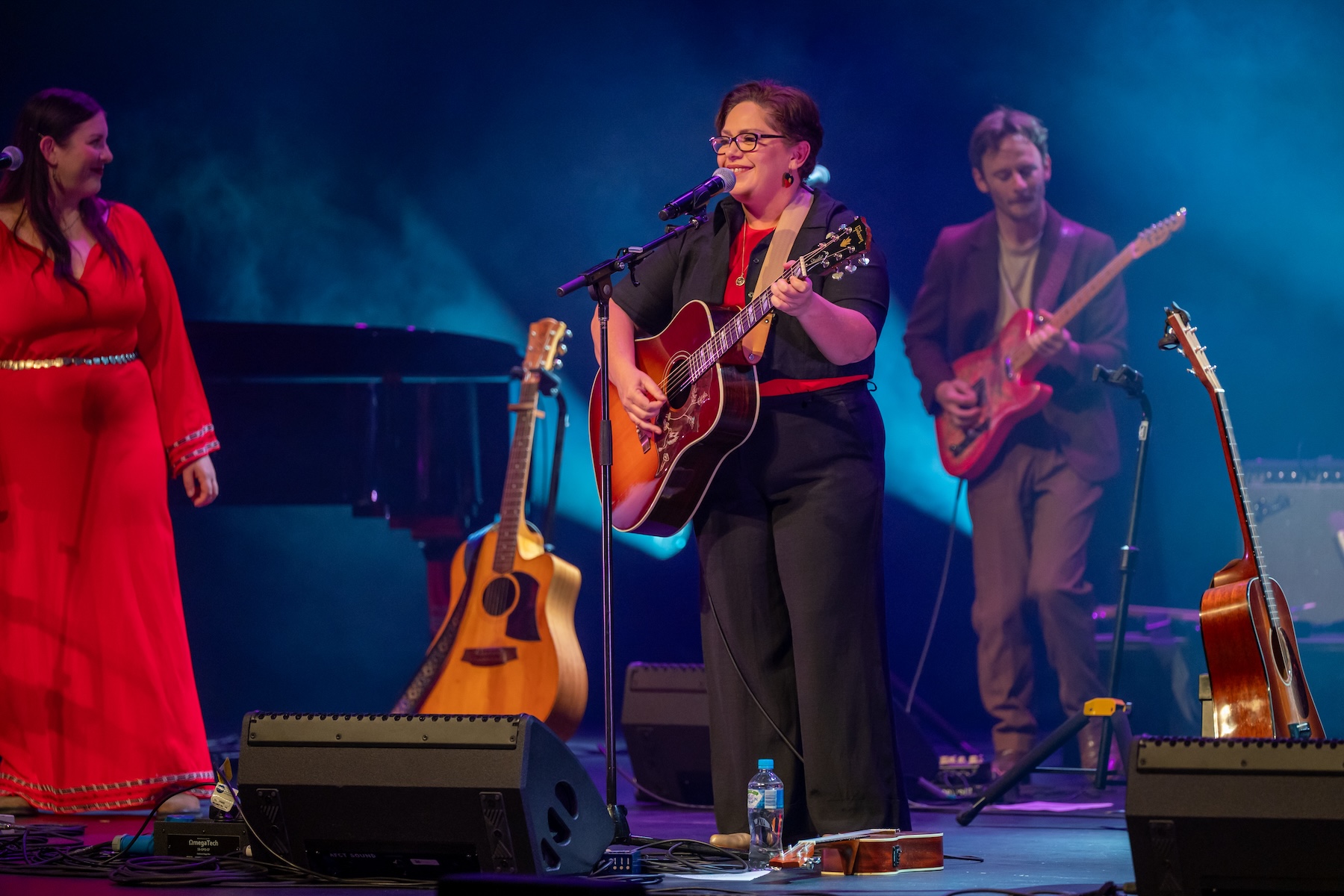 Barkindji song women Nancy Bates, no stranger to the stages of Adelaide Guitar Festival, opens this performance and it is larger than the other sets of hers I have had the pleasure of seeing. Collaborating with her band and special guests, Melody Pool and Ellie Lovegrove, Nancy soft launches her new release Share Your Love with her producer Ryan Martin John, an album which was seeded through her years on tour with the late Uncle Archie Roach.
