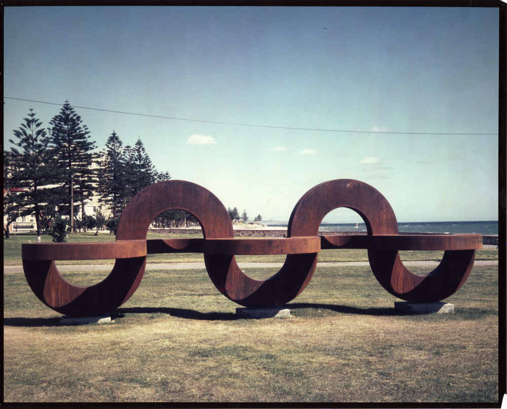 Being a full-time sculptor, making not only plinth and floor works but very large-scale public works is now a very demanding profession, physically, financially and conceptually. The bar is now a lot higher; large scale commissioned works need to be compliant with a raft of engineering, risk assessment and environmental regulations. Add to this commissioning committees’ expectations about the style of the work in terms of the thematics of the project. Greg Johns paid little heed to such realities when he embarked on his first major work Rhythm, 1978, installed and still sited at Glenelg foreshore. 50 years later he reflects in this landmark exhibition on a remarkable journey. It was and remains driven by a passion to not only make sculptures but to create large-scale works for public spaces.