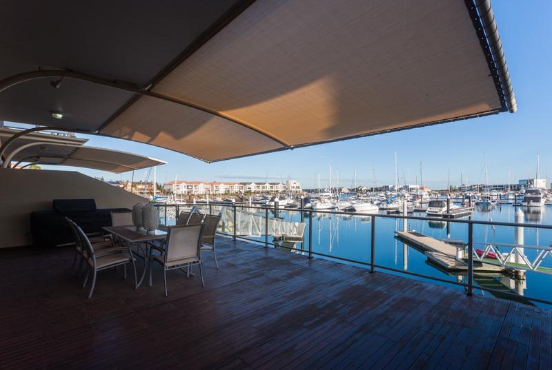 Sydney living in Adelaide. This two-storey house has been built right next to the marina, for convenient yacht-mooring. The second-floor bedroom, with its wide glass sliding windows, looks right out over the water, as does the adjoining balcony. The kitchen is downstairs and fits into an open-plan living space which includes a gas stove – perfect for when the weather cools.