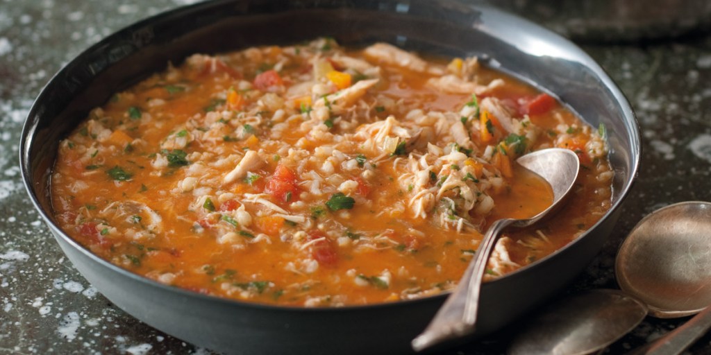 Add the barley and reduce the heat to a simmer, then cook for about 50 minutes, or until the barley is tender. Add the chicken and parsley, and stir through to heat. Season well with salt and pepper to taste.