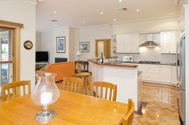 This 2001 sandstone villa seems a lot more historic than it is – perhaps it’s absorbed the trappings and respectability of age very quickly. The house has nine rooms, all on Tasmanian oak parquetry flooring and under high ceilings with deep cornices. The four double-bedrooms mean there’s plenty of room for a large family or one with adult children.