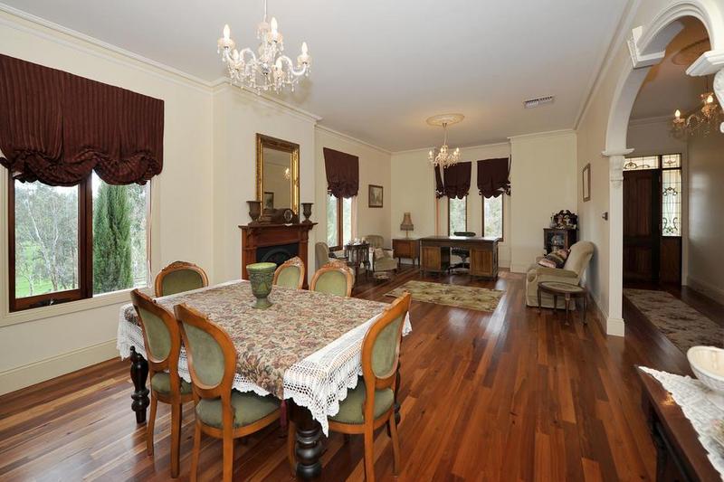 Set on a very large property, this country estate home comes with plenty of room for a large family. The house is done in a formal style, full of high quality touches including hanging lighting. The floorplan is centred around formal dining and lounge rooms. There’s a big kitchen with an adjoining family room. An outdoor entertaining area on the covered balcony overlooks the property.