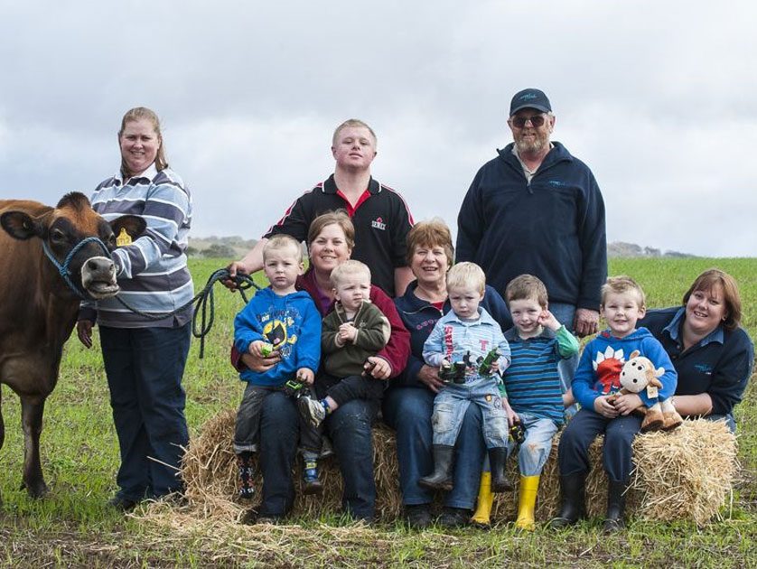 Jersey Fresh comes straight from Carcoola, a 180-acre family farm in the western Barossa. Jeff and Erica Kernich are at the top of the family tree, followed by daughters Amy, Paula and Lisa and son Mark, all working on the farm with partners who help out when they can. Currently the next generation numbers six with another on the way.