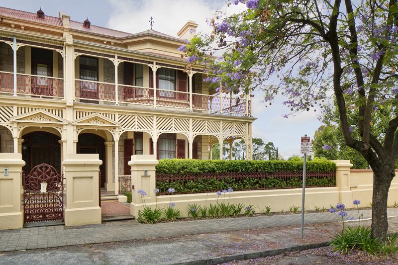 This Victorian mansion sprawls over 10 rooms, all large and catered for by three bathrooms over two levels. There’s also a wine cellar underneath. Out back you’ll find terraced garden grounds – this is, it should be noted, a very large block- including a paved area.