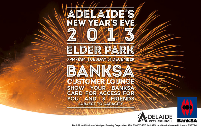 BankSA customers will be able to kick back and relax in the BankSA customer Lounge at next week’s Adelaide City Council New Year’s Eve Party in Elder Park.