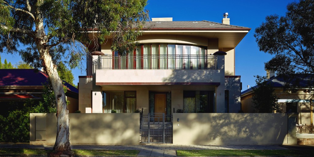 This two-storey North Adelaide home boasts views of the parklands, a wealth of natural light, and a natural Art Deco aesthetic accentuated by soft tones and engagement with its surrounds.