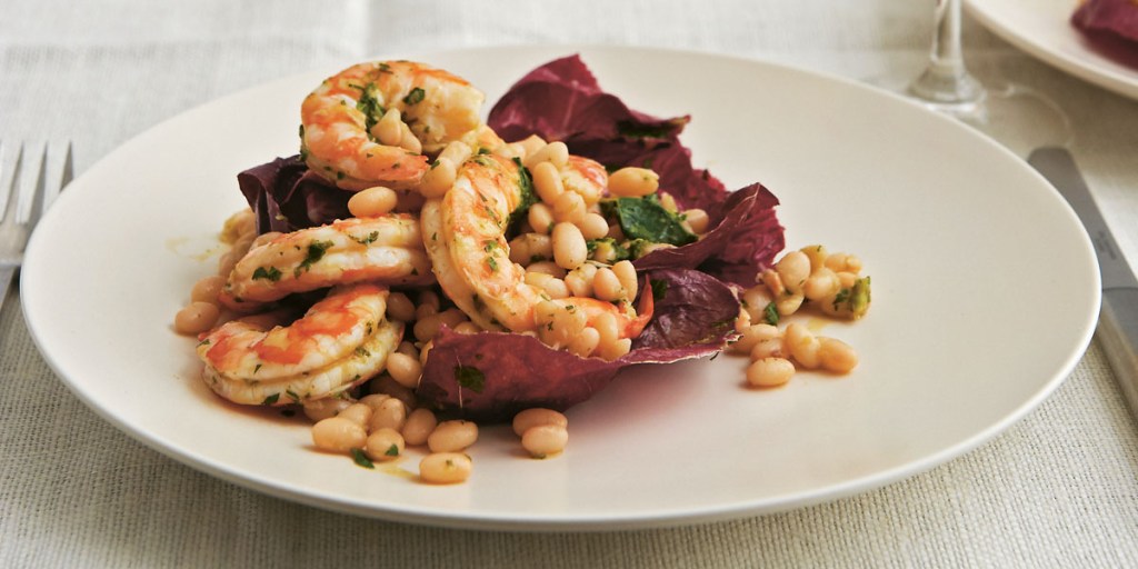 This King Prawn and White Bean Salad with Lemon Anchovy Dressing is featured in renowned Australian chef Neil Perry’s latest cookbook Easy Weekends.