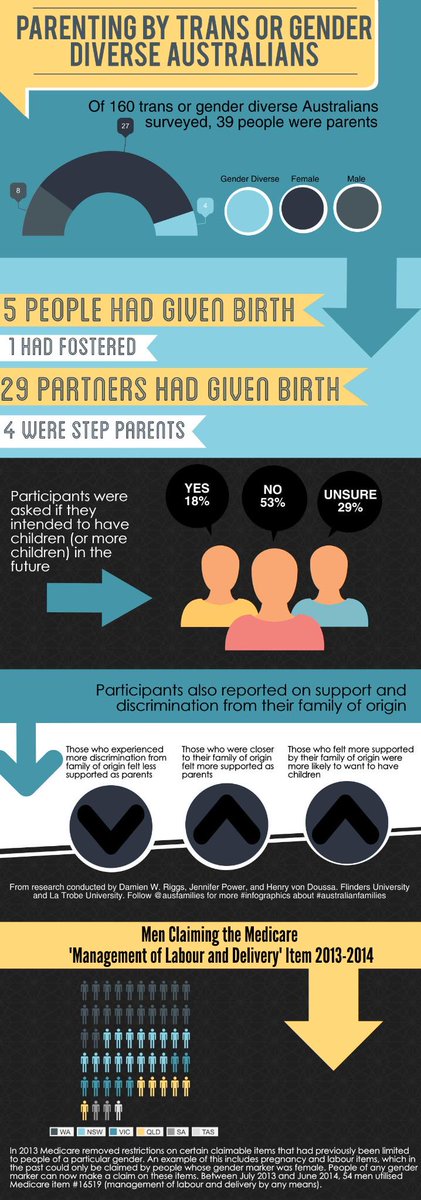 Still to be told, however, is a third part to the story. Lacking from Transparent are representations of younger transgender people having children after their transition. Figures released by Medicare in 2014, a year after it removed restrictions on certain items (such as the restriction of pregnancy and labor related items to people with a female gender marker), indicate that more than 50 men gave birth in Australia in one year alone.