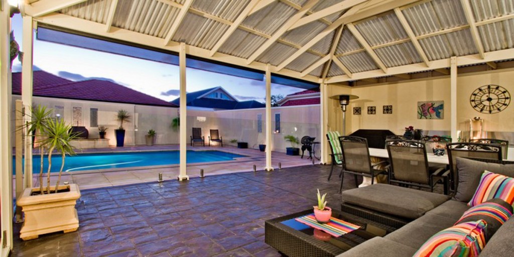 This two-storey home has nine main rooms. There are four double bedrooms, two large bathrooms and three toilets. The home features a large outdoor entertainment area including an in-ground pool.