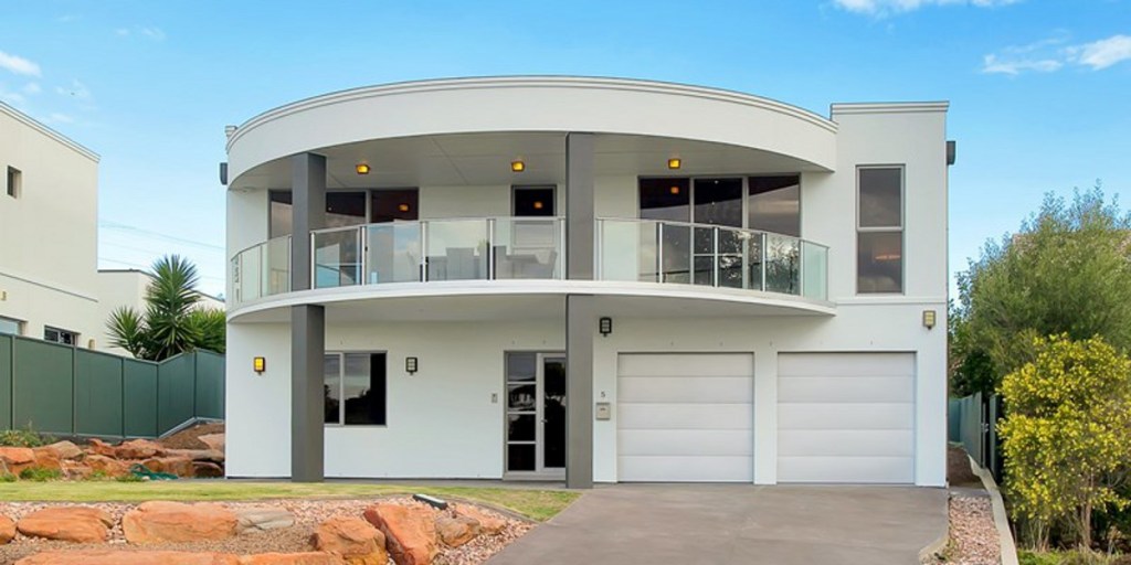 This two-storey house has an unusual curved façade and balcony. Upstairs there is an open-plan living room with glossy timber flooring and a well-appointed kitchen with granite benchtops, quality appliances and a walk-in pantry. The main bedroom has a walk-in robe and en suite.