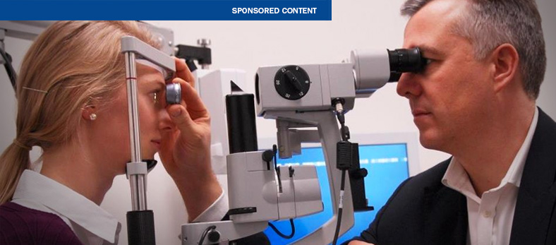 Professor Pesudovs says the glare test might be introduced across other optometry practices, next to the Watkins Lens which provides improved visualisation of the inside of the eye (as pictured).
