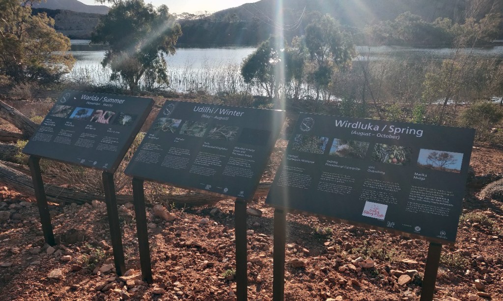 The Leigh Creek Area School and Leigh Creek Community Progress Association are placing more bilingual signs along the Akurra Trail to the water’s edge of Arrunha Awi (Aroona Dam).