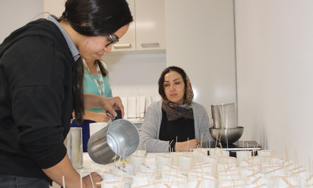 Hand pouring the candles – each batch has a limited run of 200 – and packaging up the spices provided the refugee women and men with a chance to forge new friendships and share stories.