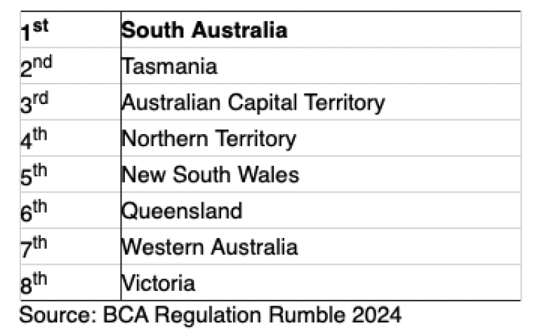 The Business Council of Australia’s annual ‘Regulation Rumble’ report named South Australia the best place in the country to do business ahead of all other states and territories.