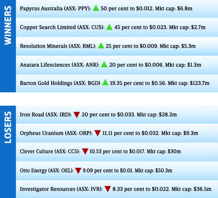 Virtually no news this week from the Losers list, which included Iron Road, Orpheus Uranium and Clever Culture Systems.