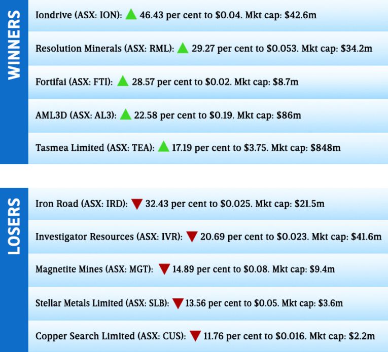 Very little news from the Losers, except from Iron Road which announced a new deal giving it exposure to a rare earths project near Tarcoola in SA.