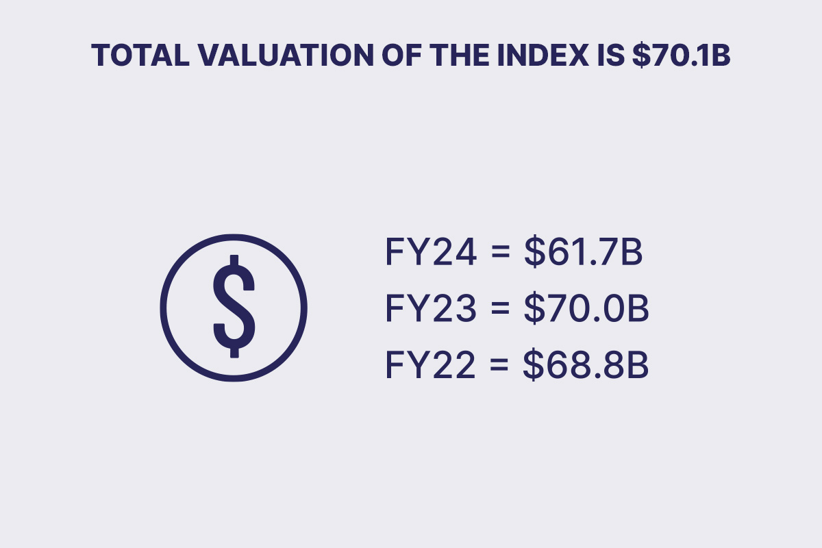 “The value of the Index has risen back to the $70 billion mark, which is 2023 levels when we still had Adbri and Peregrine in the list,” Adams said.