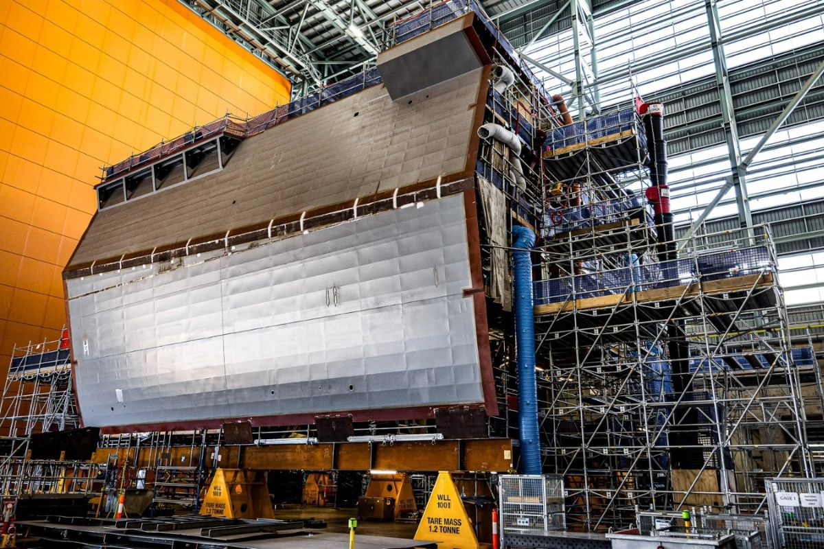 The first warship to be built by defence giant BAE Systems at Osborne under a Commonwealth Government contract was being put together like a huge, complicated Lego set.