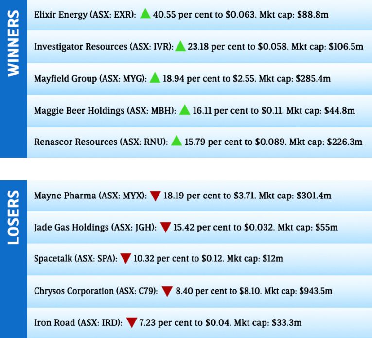 Elixir Energy was the top Winner for the week, with shares rising 40.55 per cent on the back of an announcement that Omega Oil and Gas had acquired a 19.43 per cent equity interest in the SA business.