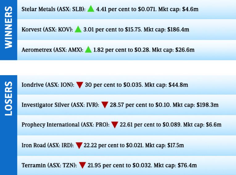 The only companies that rose over the five trading days were Stelar Metals, Korvest and Aerometrex – all rising by between two and four per cent.