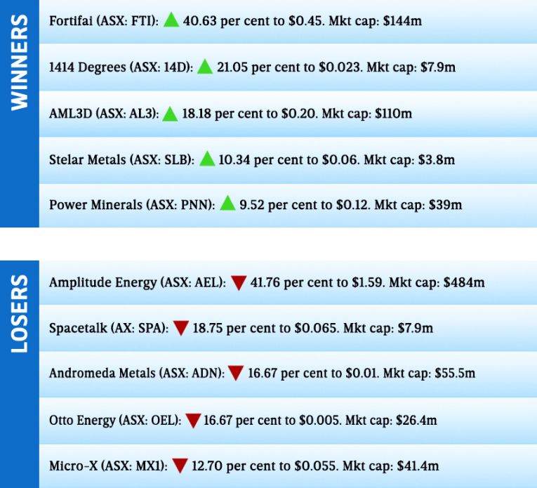 Video games firm Fortifai surged on the back of half-yearly results, with losses falling 70 per cent to $517,000 (from $1.7 million). The company’s shares are up a huge 1595 per cent on the year.