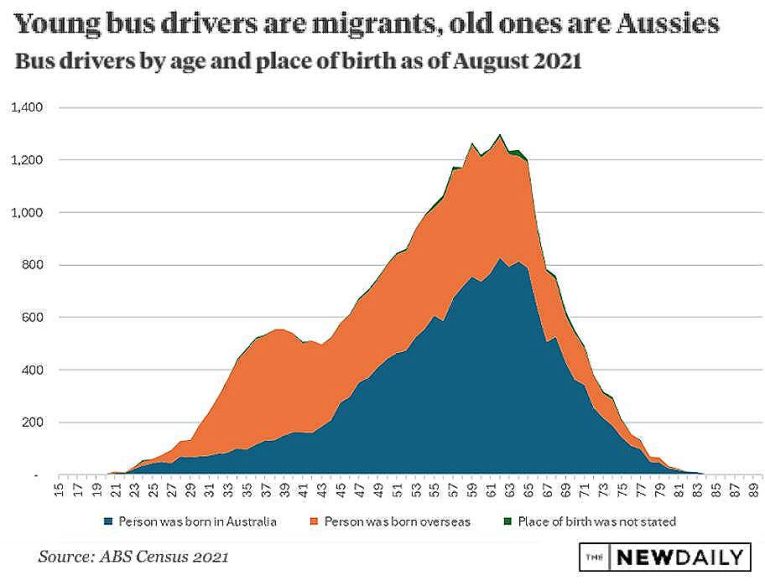 Fewer truck drivers (27 per cent) were born overseas. Among younger truckies the number of migrants has been steadily increasing (now over 40 per cent of workers in their 30s were born overseas). Among bus drivers, the share of migrant workers is significantly higher (45 per cent) – especially among drivers in their 30s (75 per cent).