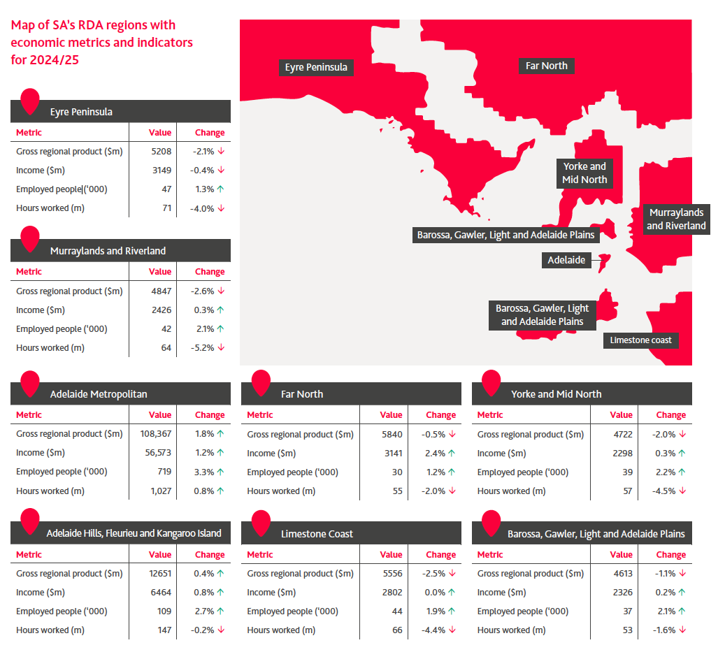 And regions are struggling across the state with the Murraylands and Riverland, the Limestone Coast and Eyre Peninsula facing the toughest downturns as they grapple with the impact of drought and flood recovery, fruit fly and rising costs.