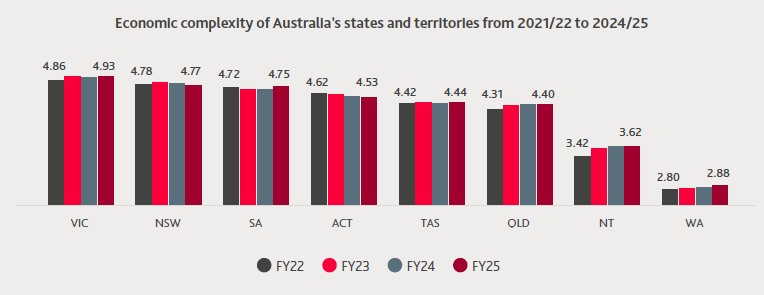 South Australia’s economic complexity score was strong compared to other states and territories, BDO found.