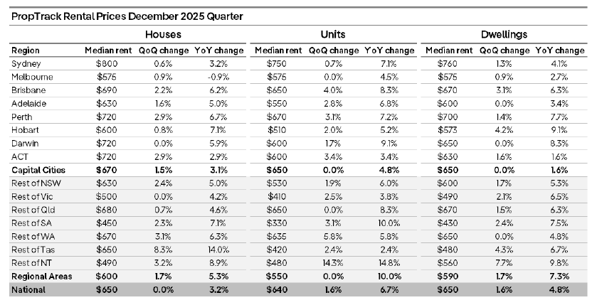 While it remains below the national median weekly rent of $650 in December 2025 there was a rise of 1.6 per cent compared to the year before.