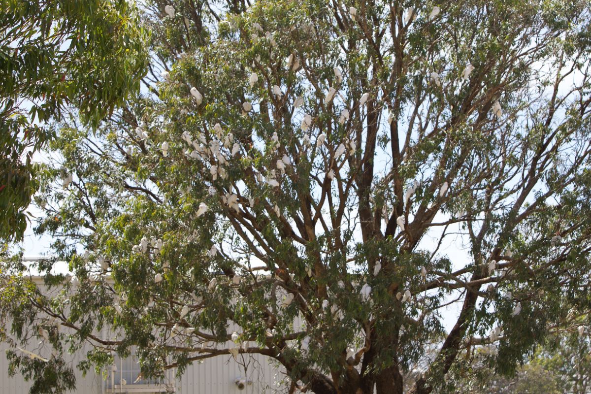 Over the past three years, flocks of the native white corellas have taken to roosting at the Kingscote Campus that teaches children from kindergarten to year 12, during the summer months.