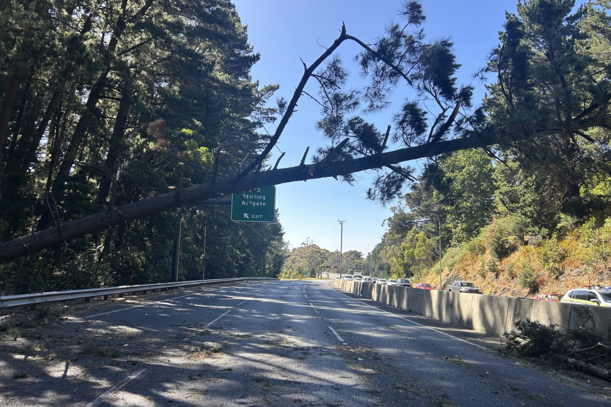 In one recent incident on Boxing Day, a massive pine tree fell down, blocking all three lanes of the South Eastern Freeway up-track before the Stirling exit.