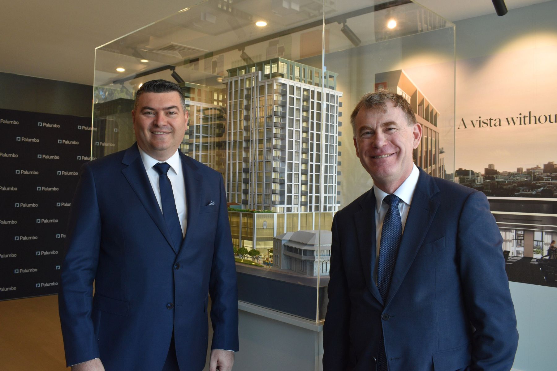 Malinauskas joined housing minister Nick Champion and developer Daniel Palumbo at the site’s showroom that is currently inside the old pub on Wednesday to announce that construction would start this year.
