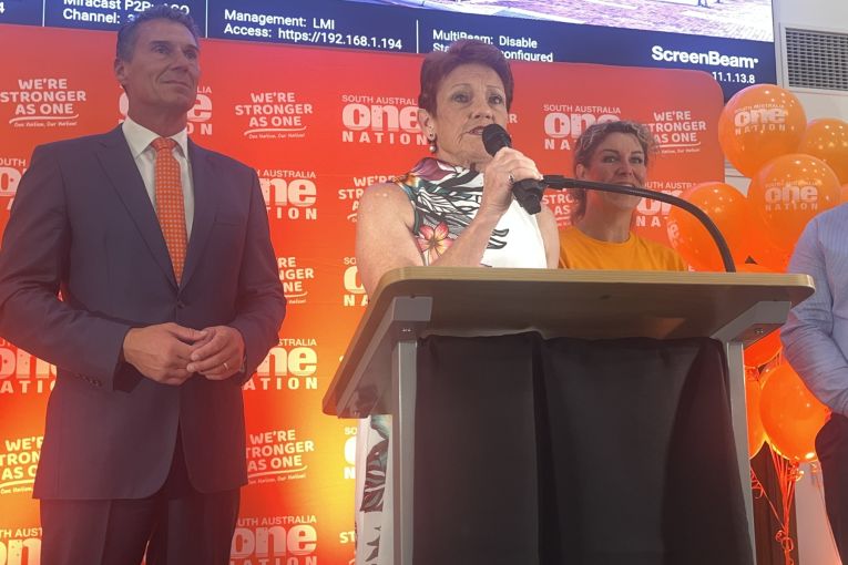 One Nation leaders have addressed their supporters as counting shows an unprecedented surge for the party across South Australia. Pauline Hanson telling Peter Malinauskas she was leaving him “some landmines, they are called One Nation members of parliament”.