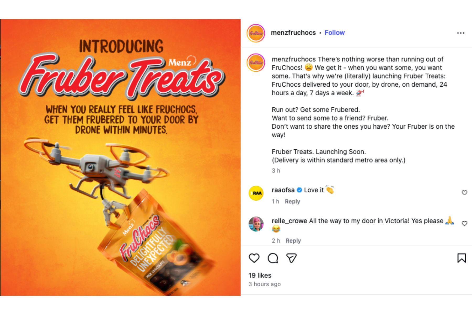 Fruber Treats, they say, will make sure you never run out of the snack with FruChocs “Frubered to your door within minutes”.