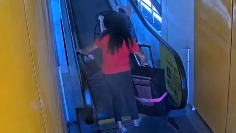 The footage highlights preventable injuries involving older travellers, particularly in combination with a heavy suitcase and an escalator. Such situations can lead to loss of balance, falls, and strain-related injuries.