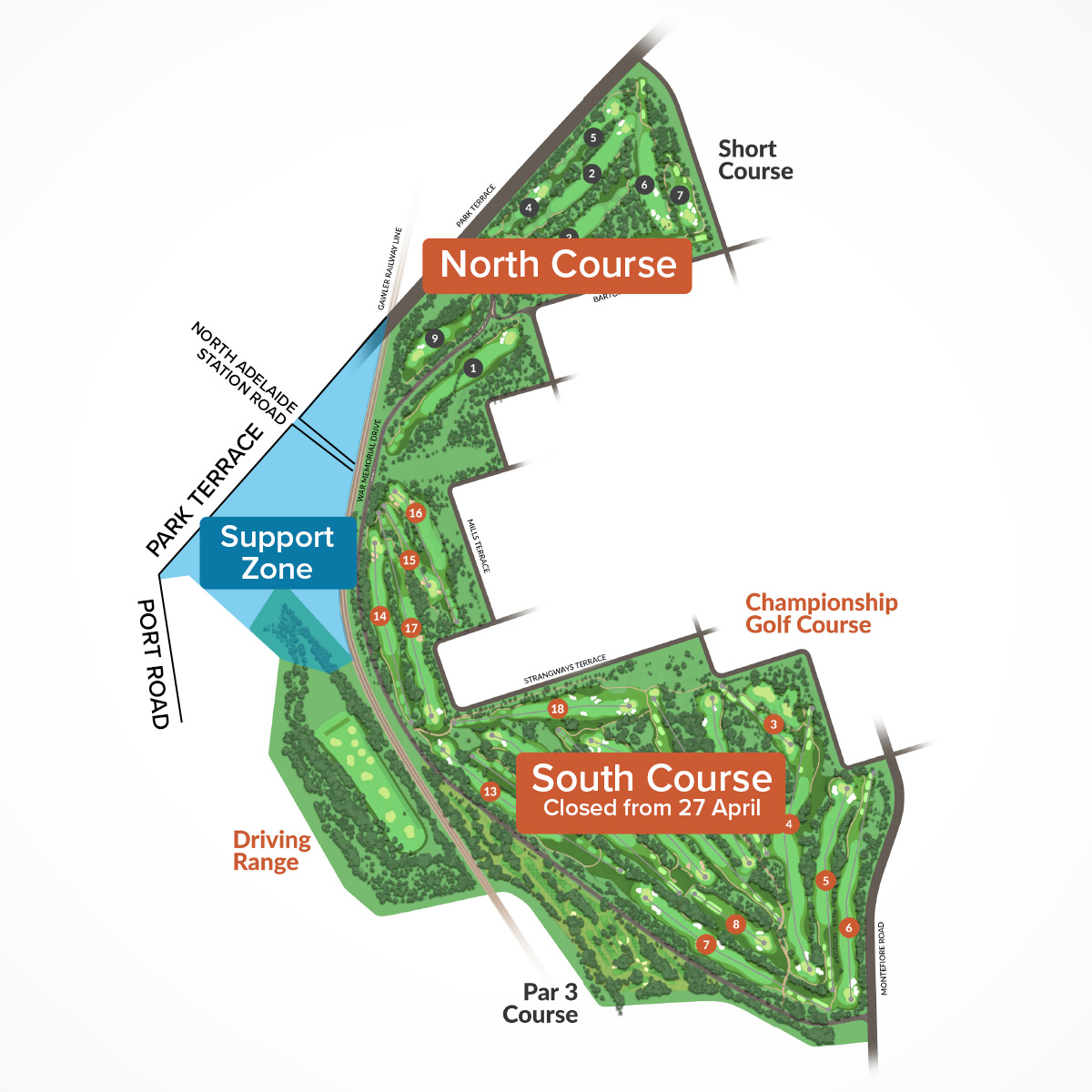 As a cloud remains over LIV Golf’s future the state government is set to close sections of North Adelaide’s prime park lands course. Latest work plans for its $45 million makeover are now revealed. See the map.