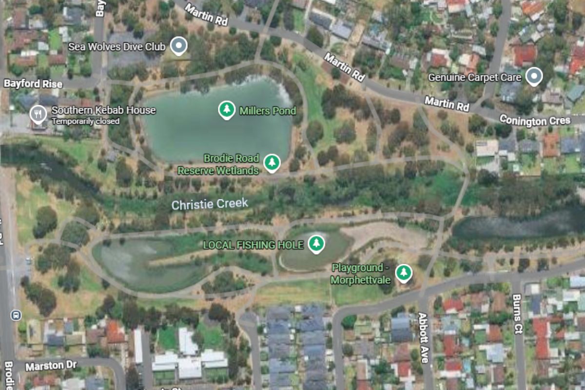 SA Police’s Water Operations Unit and Major Crime detectives are searching waterways adjacent to Morphett Vale’s Christie Creek/Martson Reserve for knives they believe are connected to the alleged murder of Cale Leriano.