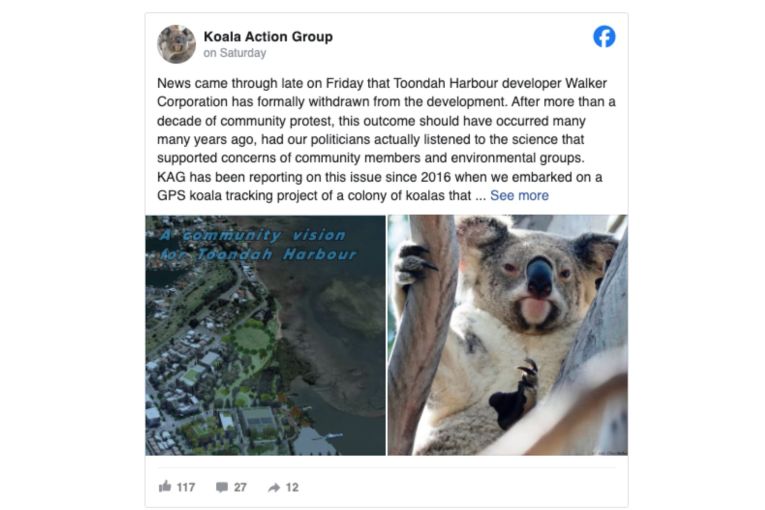 Taking to social media, the Koala Action Group – which had embarked on more than a decade of protest against the development – thanked members and supporters for their long-term commitment.