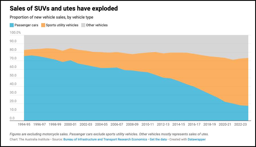 This is not surprising. Australia has a big “big car” problem – we have too many SUVs and utes, and we keep getting lots more of them.